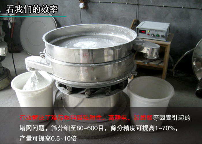 超聲波振動篩可將各種常用的低頻電能轉(zhuǎn)化為高達38KHz的高頻電能,再通過超聲換能器,終得到一個38KHz機械振動,以此進行高效的篩分和清網(wǎng)工作,有效解決了難篩物料因粘附性、高靜電、易團聚等因素引起的堵網(wǎng)問題,篩分細(xì)至80~600目,篩分精度可提高1~70%,產(chǎn)量可提高0.5~10倍。