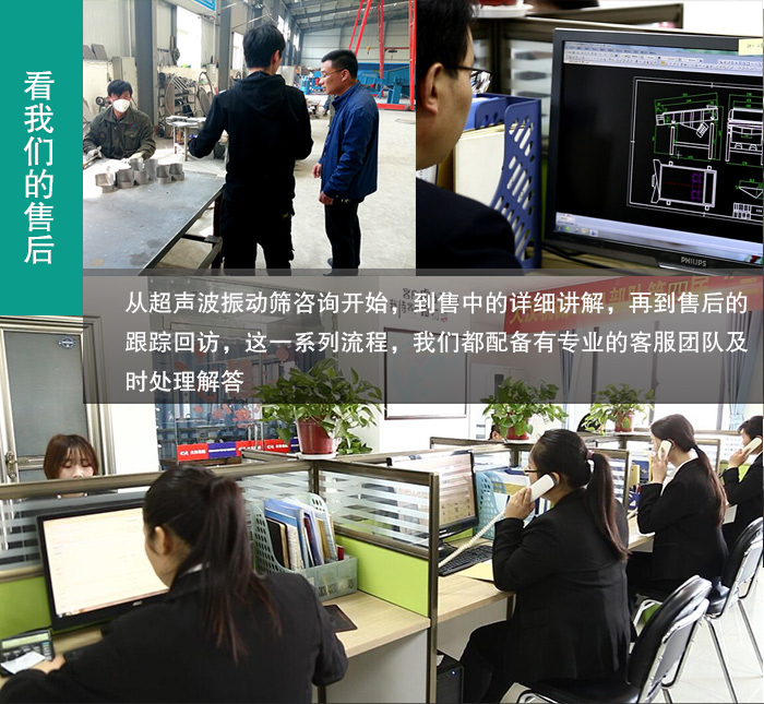 從超聲波振動篩咨詢開始,到售中的詳細(xì)講解,再到售后的跟蹤回訪,這一系列流程,我們都配備有專業(yè)的客服團隊及時處理解答,保證用戶的滿意度和回購率,讓您購機無憂。