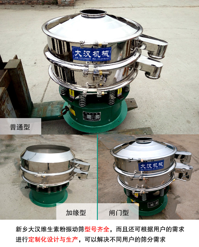 新鄉(xiāng)大漢維生素粉振動篩型號齊全,而且還可根據(jù)用戶的需求進(jìn)行定制化設(shè)計(jì)與生產(chǎn),可以解決不同用戶的篩分需求。