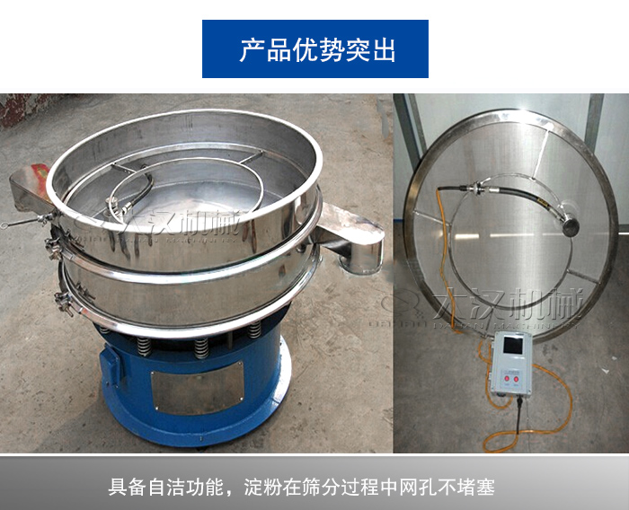 3、無需添加其他篩網(wǎng)清理裝置,具備自潔功能,淀粉在篩分過程中網(wǎng)孔不堵塞;