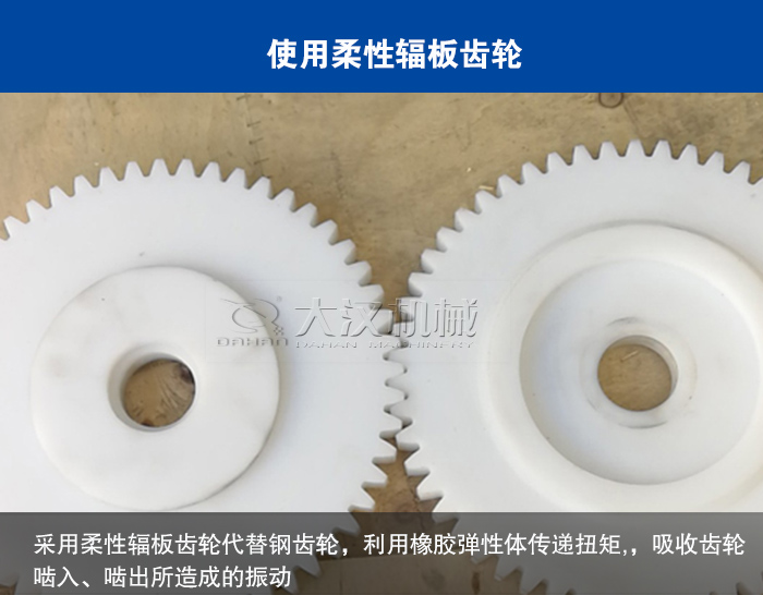 采用柔性輻板齒輪代替鋼齒輪,即在齒輪的輻板上利用橡膠彈性體傳遞扭矩,,吸收齒輪嚙入、嚙出所造成的振動(dòng),以此降低超聲波振動(dòng)篩的噪音。