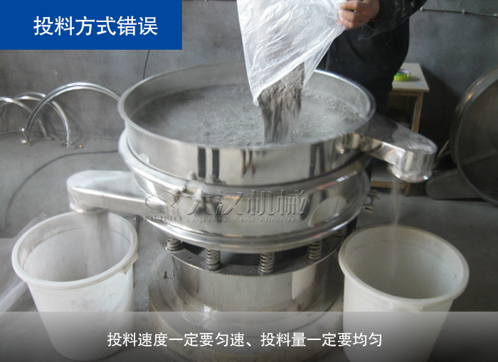 超聲波振動篩工作過程中不斷的投料,如果出現(xiàn)一次投料過多的情況,會嚴(yán)重阻礙物料在篩面上正常運動,不但容易使篩網(wǎng)疲勞變得更加松弛,而且會大大降低物料的處理量,因為投料過多將會使本身處于不平衡運轉(zhuǎn)的電機負(fù)荷突然增加,不但容易損壞篩網(wǎng),而且容易造成振動電機的損壞。