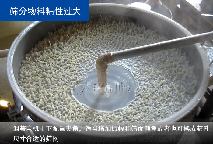 解決方法:可以通過調(diào)整電機上下配重夾角,適當(dāng)增加振幅和篩面傾角或者也可換成篩孔尺寸合適的篩網(wǎng),使物料均勻分布在篩網(wǎng)上過濾篩分。