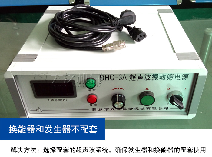 解決方法:在購買超聲波振動(dòng)篩時(shí)要選擇配套的超聲波系統(tǒng),后期需要更換系統(tǒng)配件時(shí)也應(yīng)注明現(xiàn)用系統(tǒng),確保發(fā)生器和換能器的配套使用。