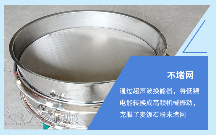 對于篩分粉末來說,一般常出現(xiàn)的問題就是粉末具備高靜電,在篩分過程中易結(jié)團,從而造成篩網(wǎng)堵塞,麥飯石粉末也不例外,而超聲波振動篩將振動篩與超聲波結(jié)合起來,通過超聲波換能器,將低頻電能轉(zhuǎn)換成高頻機械振動,使麥飯石粉末保持懸浮狀態(tài),克服了其堵網(wǎng)的現(xiàn)象發(fā)生,具備自潔功能,無需增加其他篩網(wǎng)清理裝置,篩分精度也可提高1-70%。