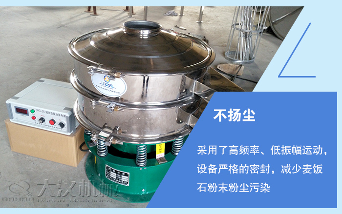 超聲波振動篩雖振動頻率高,但是其采用了低振幅運動,再加上超聲波振動篩采用嚴格的密封,能夠減少麥飯石粉末在篩分過程上產(chǎn)生的粉塵污染,能夠改善工作環(huán)境,符合環(huán)保要求。