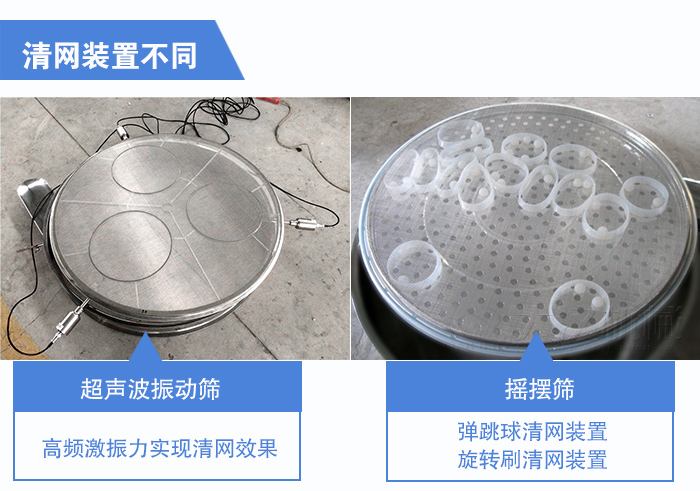 超聲波振動(dòng)篩是由超聲波換能器產(chǎn)生的高頻激振力實(shí)現(xiàn)清網(wǎng)效果,即具備自清潔功能。