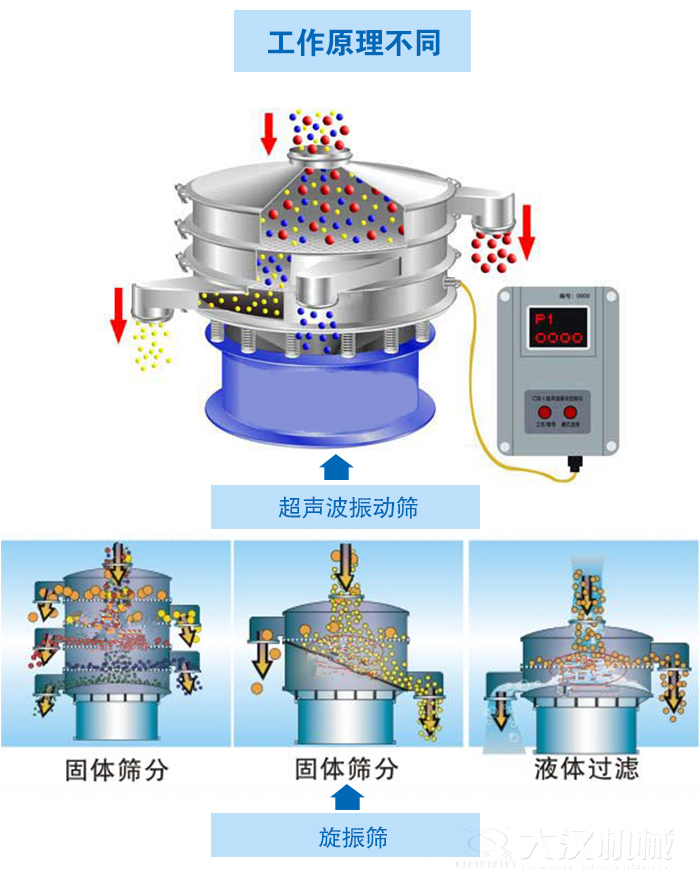 但超聲波旋振篩是對(duì)傳統(tǒng)旋振篩的細(xì)分,兩者還是有很大不同。